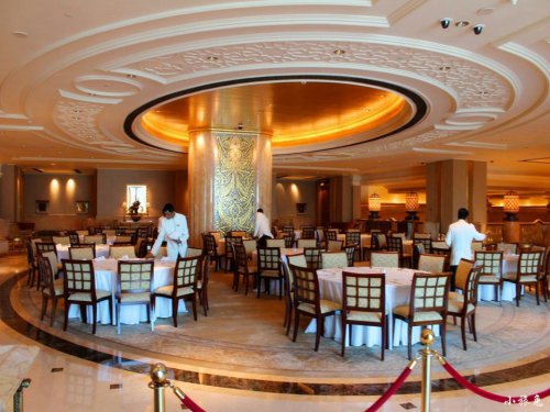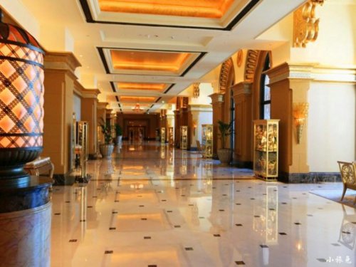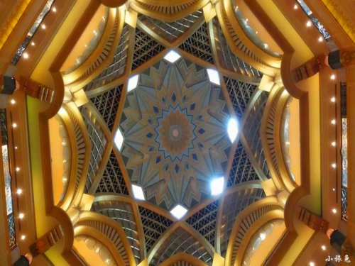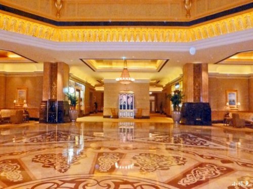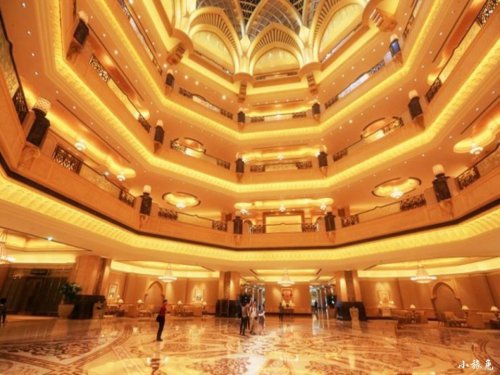 該酒店耗資近30億美元,坐擁85公頃園林和1.3公里黃金海岸,是一座古典式的阿拉伯皇宮式建筑。酒店的外形仿佛是一座水上清真寺,有著濃郁的中東風(fēng)情。其內(nèi)部更是金碧輝煌。據(jù)說耗盡22噸純金打造,更有海量的大理石、價(jià)值不菲的油畫裝飾和上千盞特別定制的施華洛世奇水晶吊燈……據(jù)說,有10名工作人員專職保持其清潔。