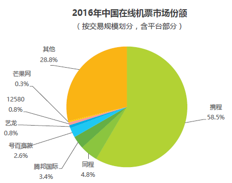 根據(jù)艾瑞咨詢的數(shù)據(jù),2016年攜程在機票、住宿領(lǐng)域的市場份額分別為58.5%、59.6%;同程在機票領(lǐng)域以4.8%的份額位居第二,在住宿領(lǐng)域以2.7%的份額位居第四,而美團、藝龍分列二、三位。盡管2017年的市場份額還未出爐,但筆者預(yù)計變化不大。如果藝龍與同程合并,那么在“機票+住宿”領(lǐng)域,攜程的對手只就剩美團了。