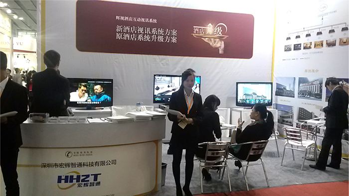 今天上午,由佛興主辦的第二十一屆廣州酒店用品展覽會,在廣州琶洲會展中心開幕。在這場為期三天的國際展覽會上,深圳市宏輝智通科技有限公司的2015最新的智慧酒店視訊系統受邀A4.1-36精彩亮相,其更加精美的系統界面吸引的各界人士的到來,讓每個觀眾都眼前一亮。