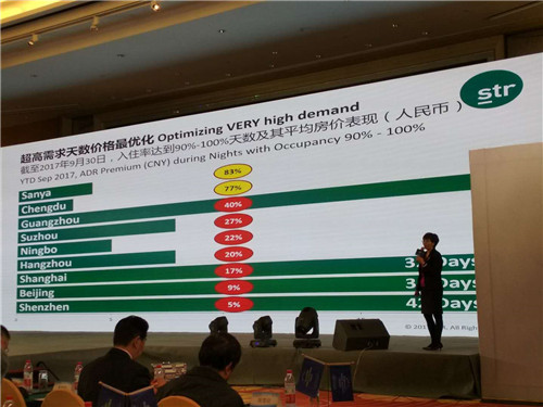 會上,STR中國區經理劉博,通過來自于中國4700家酒店的經營數據,為在場嘉賓分享了“中國酒店業績表現回顧及展望”。