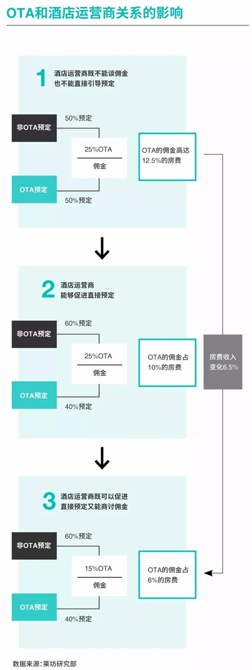 這意味著運營商的討價還價能力和對 OTA 的依賴對凈收入有影響。 假設客房需求持續(xù)不變,運營商在 OTA 業(yè)務方面的策略可能會導致房間收入相差達6.5%,如下圖所示。