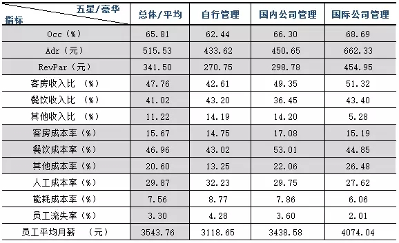 二:不同管理方式的豪華型飯店統(tǒng)計