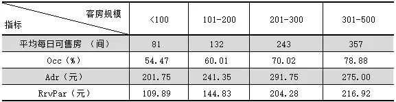 三:不同客房規(guī)模的豪華型飯店統(tǒng)計