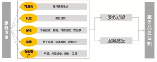 企業同樣需要站在顧客的角度思考服務質量的測量,顧客通常會從五個維度來比較使用前的期望和使用后的實際體驗之間的差距,并形成他們對服務質量的判斷。