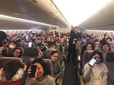 東航首個全程“空中開機”航班啟航 1月18日0點東航MU587航班旅客集體在飛行中打開手機 受訪對象供圖