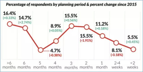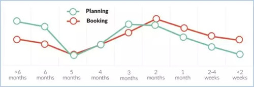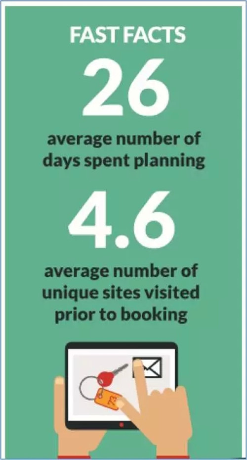 調(diào)查報告顯示,基本上有兩種類型的度假行程策劃者:即興的旅行規(guī)劃和充分的旅行規(guī)劃。即興的旅游規(guī)劃者往往在出行前的最早3個月內(nèi)才開始思考和規(guī)劃自己的行程,這一類旅客占絕大多數(shù),比例超過55%。相反,有31.1%的人是充分的旅行規(guī)劃師,他們會提前至少6個月開始規(guī)劃旅行。雖然消費(fèi)者的一個總預(yù)訂趨勢是朝著“最后一分鐘才預(yù)訂”的方向發(fā)展,但還是有旅客會提前幾個月開始研究和預(yù)訂旅程。所以酒店應(yīng)當(dāng)保持與潛在客戶從開始規(guī)劃到整個購買周期的連續(xù)接觸。