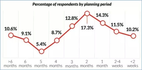 從過去連續(xù)三年的調(diào)查報告中可以看出,提前2個月預(yù)訂的人數(shù)占比最高,而幾乎三分之二的消費(fèi)者會提前至多三個月來預(yù)訂住宿。然而,還有超過四分之一的受訪者表示他們會提前至少5個月來完成住宿預(yù)訂。