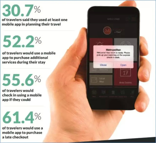 移動應(yīng)用為酒店提供了增加收益的巨大機(jī)會。在此之前,酒店從未有過與客人關(guān)于住宿地如此有效的溝通機(jī)會和能力。旅客渴望更多的便利性,比如利用移動程序來辦理入住手續(xù)。另外,對于酒店來說一個更大的機(jī)會就是許多消費(fèi)者愿意花更多的錢來獲得一些附加值,比如客房升級和延遲退房等等。所以,酒店現(xiàn)在是時候投資于移動應(yīng)用,并制定相配套的營銷策略,提高客戶滿意度,從而最終實(shí)現(xiàn)收入的增加。
