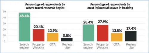 使用線上和電話的客戶在他們的規(guī)劃初期使用搜索引擎的頻率要明顯高于其他工具。但是當(dāng)客戶進(jìn)入預(yù)訂階段的時候,搜索引擎的使用者幾乎與使用酒店官網(wǎng)的用戶數(shù)量持平。另外值得注意的是,如TripAdvisor這樣的旅游評論網(wǎng)站在客戶搜索的初期使用率僅占5.8%,但當(dāng)旅客進(jìn)入預(yù)訂階段之后,受其影響的訪客則達(dá)到17.4%。當(dāng)問到客戶是否會忽略評論而直接預(yù)訂酒店的時候,83.4%的受訪者表示會先閱讀評論,這一比例與去年同期相比上升了3%。