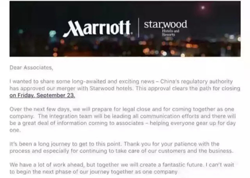 2016年8月8日,中國商務部要求將萬豪喜達屋并購案的審查期限延長至多60天,中國是并購案需要通過的最后一個國家。