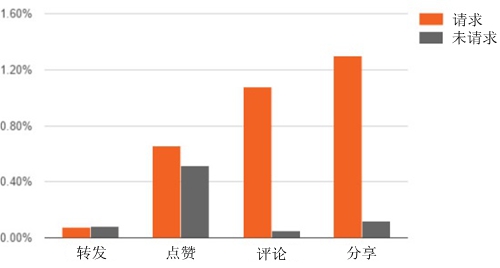 直接要求用戶轉發推文,效果并不理想。不過不同類型的請求似乎有不同的效果。