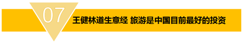 9月8日,萬達集團董事長王健林在2016廈門國際投資洽談會上發表演講,稱旅游是最好的投資之一,并給出了五個理由。第一,旅游投資是國家的產業方向,第二,旅游是最長壽的投資,第三,旅游是最環保的投資,第四,旅游是能發財的投資,第五,旅游是最富民的投資。