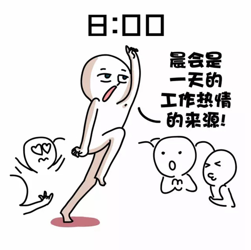 上戰(zhàn)場前,需要知己知彼。早會上,你匯報昨天的工作情況,安排今天的工作,最后,領(lǐng)導(dǎo)會給你帶來一碗雞湯,成為一天的工作熱情的來源。
