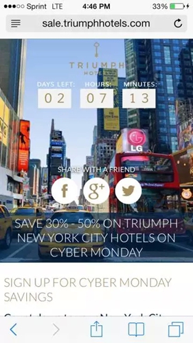 比如Triumph Hotels,他們發(fā)現(xiàn)酒店的其中一個(gè)客戶群體是帶著紐約旅行夢(mèng)想的,因此,酒店特意推出了相關(guān)套餐,并以此為口號(hào):“紐約夢(mèng)倒計(jì)時(shí)”。