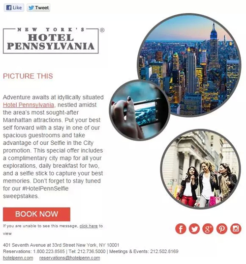 比如前文已經(jīng)提到的Hotel Pennsylvania嘗試以自拍話題來抓住國際旅行者。