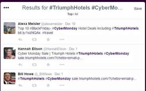 Triumph Hotels Cyber Monday 活動(dòng)在推特上的互動(dòng)