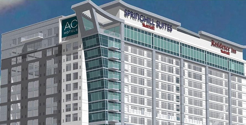 ?。ㄈf豪國際在美國田納西州首家開創(chuàng)性復(fù)合酒店Triple-Branded Property,同一建筑包含萬豪旗下的三個(gè)品牌酒店:Autograph Collection,SpringHill Suites以及Residence Inn)
