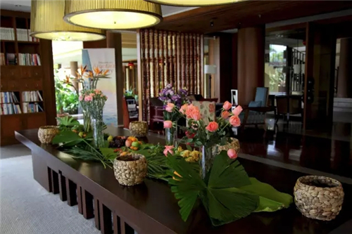 “對于一個向往寧靜的人來說,再也找不到一處比圖書館更舒心合意的天地,慵懶舒適的午后,屋內(nèi)燈光柔和,音樂輕柔,書卷在手時,已忘此身何處?若是覺得乏了,品一份精致的下午茶,齒頰留香之間,倍感美食之妙?;蚴峭覀兊谋镜鼗ㄋ噹熞黄?,精心修剪一些雨林中的花葉條枝或瓜果蔬菜,完成一份自然之美的作品。”西雙版納安納塔拉度假酒店公關主任楊潔瓊說道。