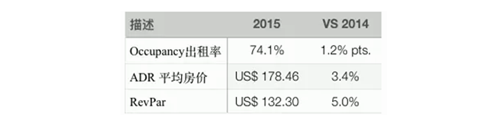 從整體上來說,2015年萬豪自營酒店的出租率為74.1%,較2014年上升了1.2個百分點。平均房價也同比上升了3.4%達(dá)到了178.46美金。從房價上也充分反映了其高端酒店的定位。