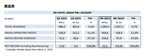 NH酒店集團(NH Hotel Group)發布第三季度財報,延續了公司自上半年以來保持的良好盈利增勢。