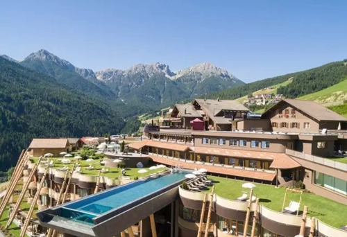 近日,一間專門提供給滑雪者與健行者的酒店Hotel Hubertus進行改造,在其頂層建了一個非??简炗職獾挠境?。