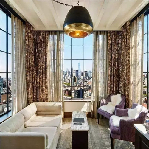 除了這火的沒道理的浴室,如果在Ludlow住一晚,請不要放過看得見風(fēng)景的套房里——這個標(biāo)準(zhǔn)的紐約清晨起床照。