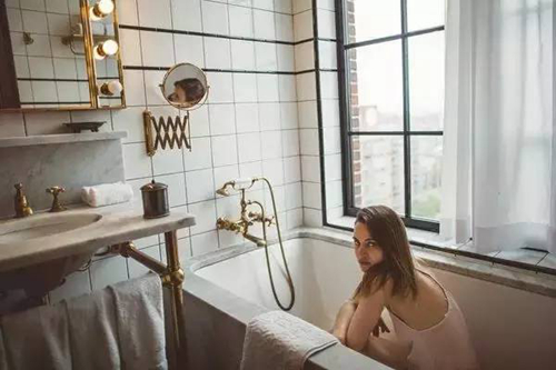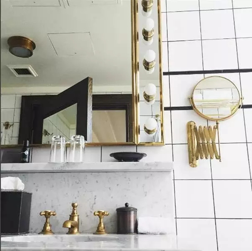 漆金管道,大理石浴缸,馬賽克墻磚營造出的復(fù)古美感,引發(fā)了大規(guī)模的網(wǎng)友們來這里入住,開始在浴室自拍。