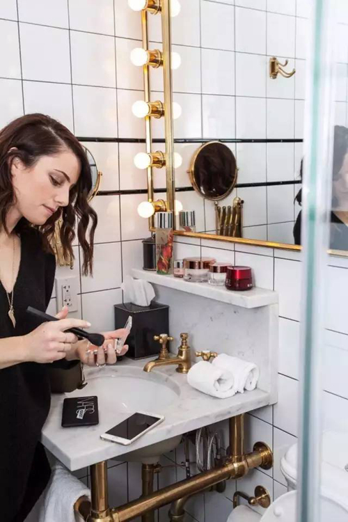 浴室中的化妝鏡是可伸縮的,還擁有好萊塢后臺感的背光燈,看來設(shè)計師良苦用心,為的就是讓網(wǎng)友們在這里自拍各種美照。