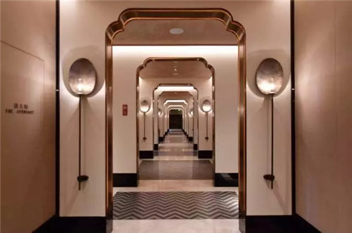 客房部分的頂部設計是室內設計的一根“軟骨頭”,原來的樓板是弧形水泥板型,Rockwell將其巧妙的做成白色弧形天花,并以橡木窗框襯托,既體現出當代的設計精髓亦保留了對歷史建筑的尊重。