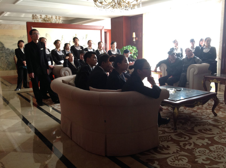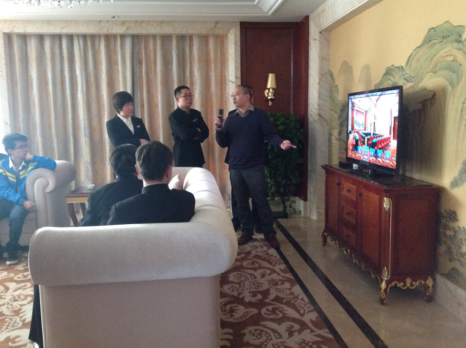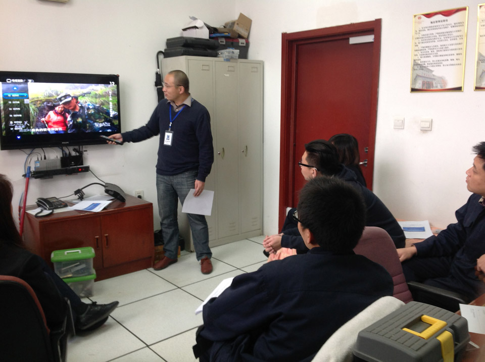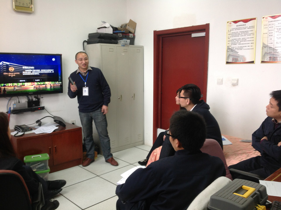 八:現(xiàn)場給酒店各個領(lǐng)導(dǎo)講解“輝視系統(tǒng)”!每個工作人員都很認真的吸收新穎的酒店電視系統(tǒng)知識!
