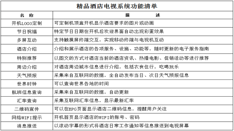 高速IP網絡:傳送IP流量進行數字內容分發(fā)所需要的高速寬帶網絡,對酒店而言,可利用酒店原有局域網絡或新部署局域網絡,而無需另外部署有線電視同軸網絡。